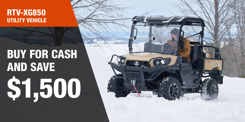 Rebate of $2,000.00 available on cash purchases of a new RTV-X Cab only. Offer valid until 03-31-2026.